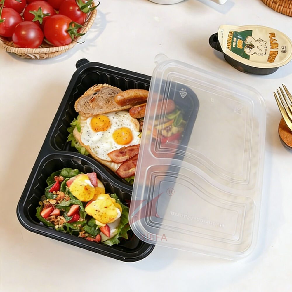 2 compartment disposable food-grade PP takeaway lunch box packaging container