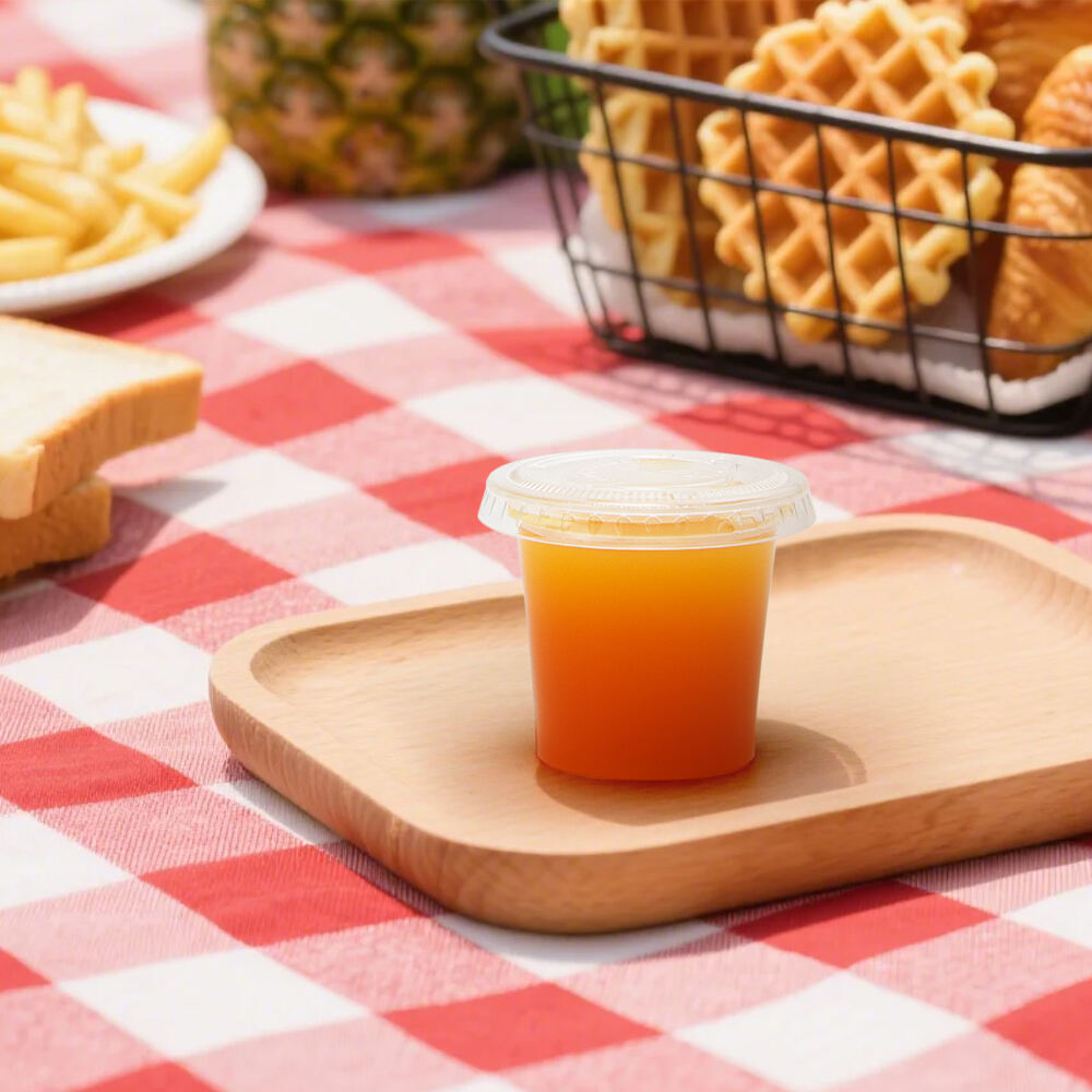 Product Overview: Our Disposable PLA Sauce Cups are made from high-quality PLA material (Polylactic Acid), a biodegradable and eco-friendly plastic alternative derived from natural plant sources such as corn starch. The cups are sturdy, durable, and provide an environmentally-conscious solution, making them an excellent choice for restaurants, takeaway services, supermarkets, and food manufacturers. These cups offer convenience, safety, and sustainability as a replacement for traditional plastic products.