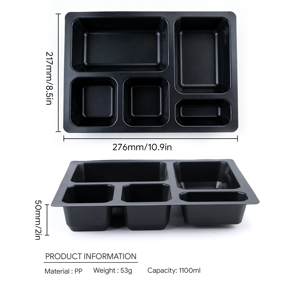 Factory-customized 5-compartment recyclable food-grade PP trays with sealable film packaging containers