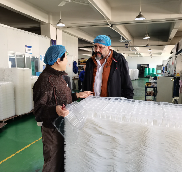 Dum per fabricam ambulabat, Maor praecipue ad nostros cibos PP (culturam, forfices, et cochleas) atque ad nostros discos rotundos PP octo-pollicares attendebat. Haec producta late in usu sunt in cibis ad domum ferendis, catenis cauponarum, cibis aeronefritis, eventibus, et mercatis venalibus. Nostra turma praeventa est de praerogativis materiae, conceptione productorum, processu fabricationis, et scenariis applicationis, plene ostendens facultates professionales XM XIEFA in vasculis unius usus et solutionibus emballagiorum ciborum.
