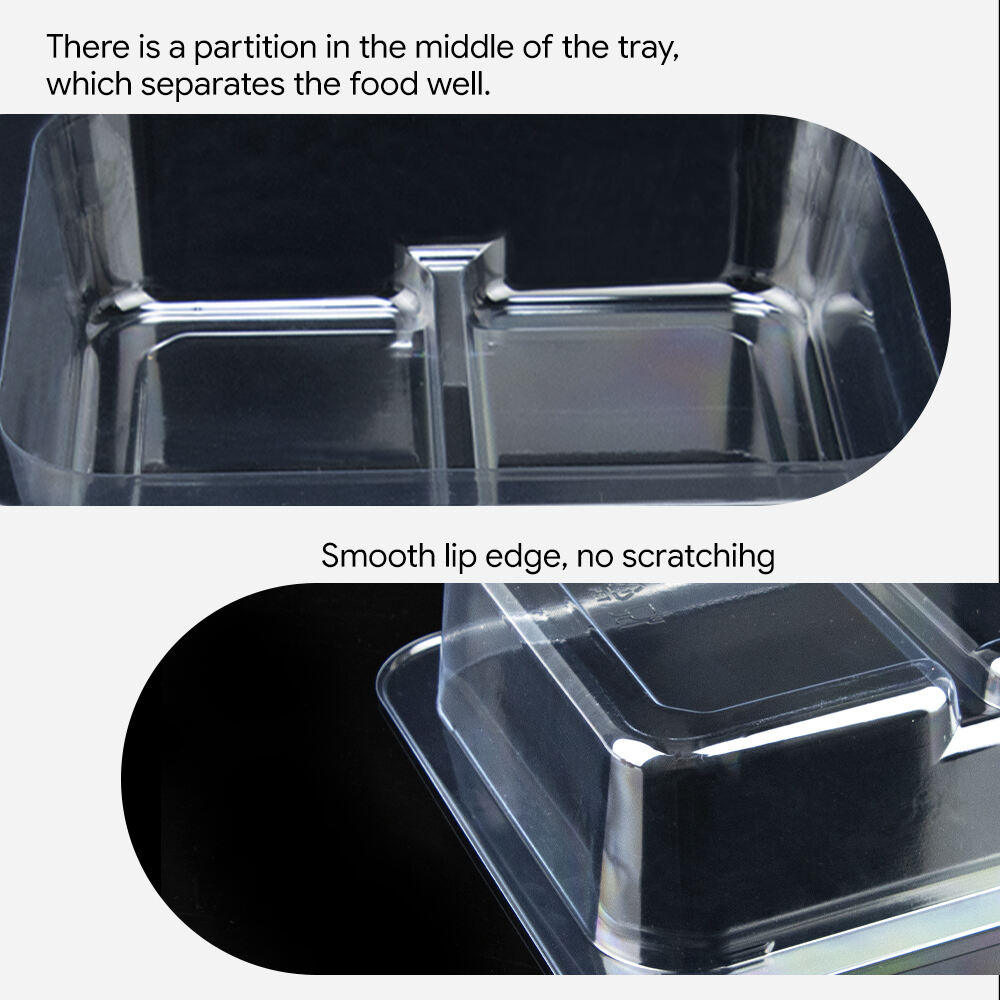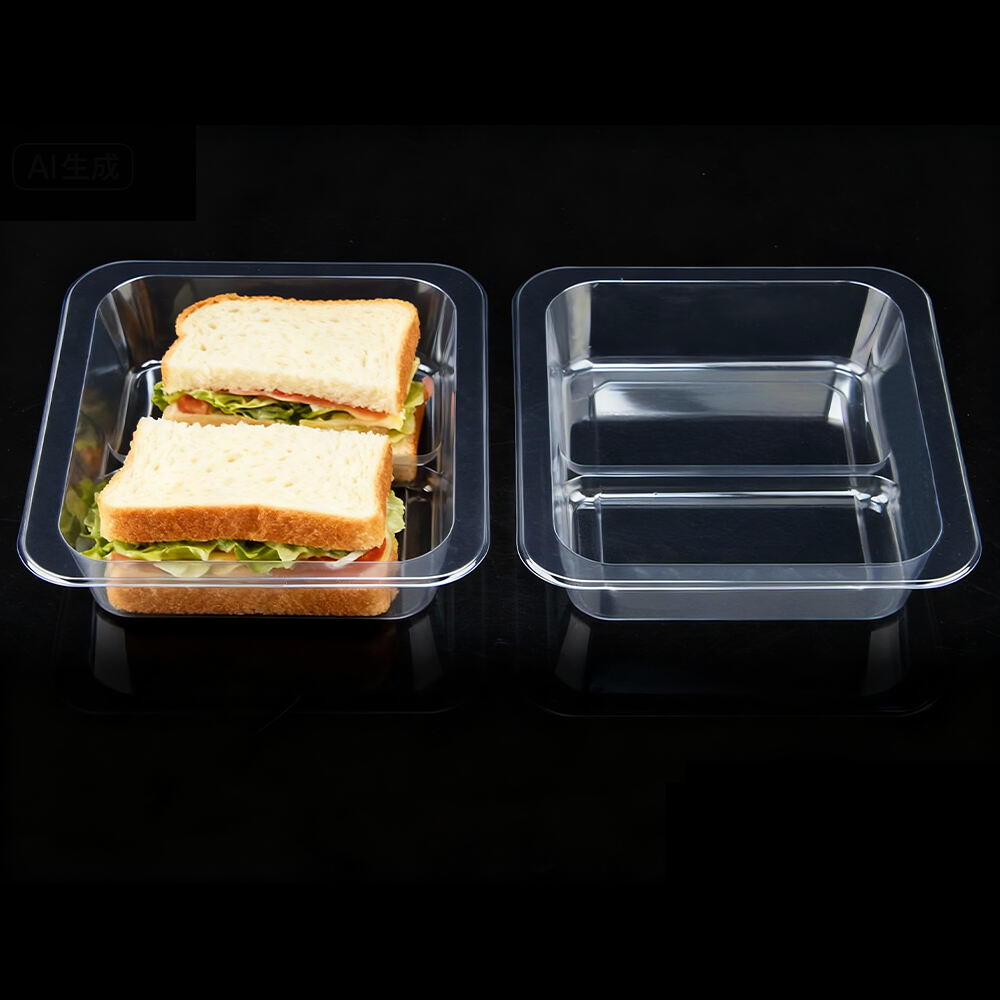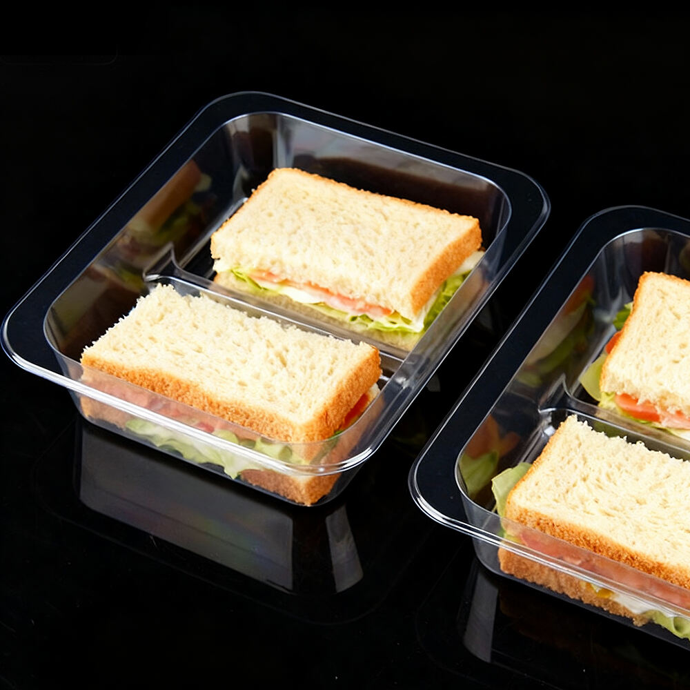 เปิดตัว ถาดแซนด์วิชใสสองช่อง — โซลูชันบรรจุภัณฑ์ขั้นสุดยอดสำหรับร้านเดลี เบเกอรี่ คาเฟ่ และผู้ค้าปลีกอาหารที่ต้องการผสมผสานความโปร่งใส ความสะดวกในการใช้งาน และอัตลักษณ์แบรนด์เข้าด้วยกัน ผลิตจากวัสดุ RPET 0.5 คุณภาพสูง ถาดนี้ช่วยให้มองเห็นสินค้าได้อย่างชัดเจน พร้อมปกป้องแซนด์วิช ซัลลาด และอาหารแสนพิเศษอื่นๆ ได้อย่างมั่นคง