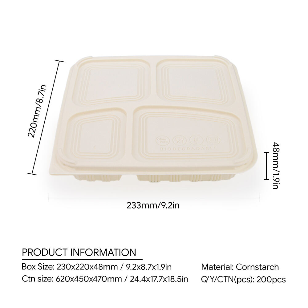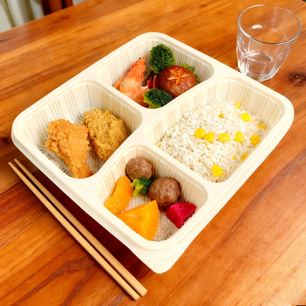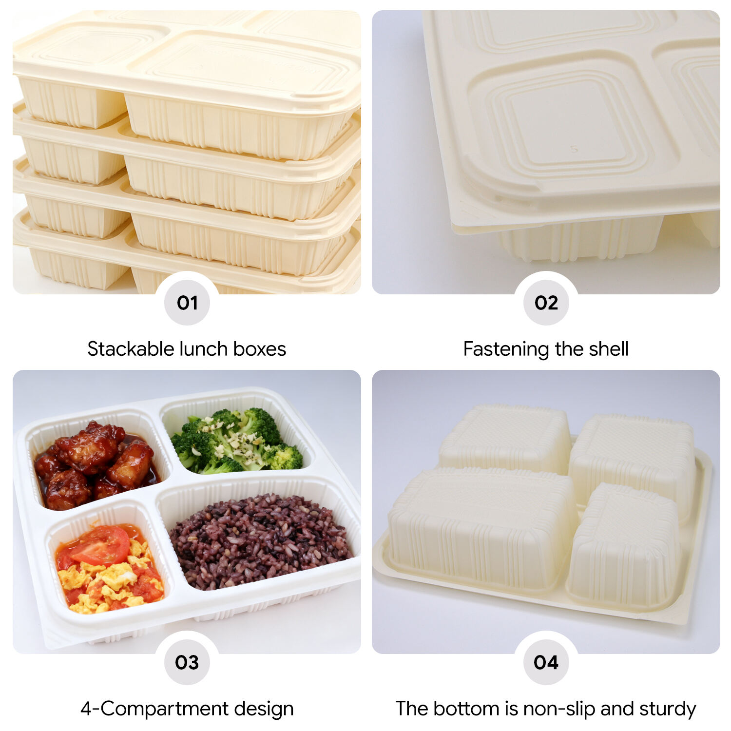 4 Bölmeli Tasarım : Ana yemekleri, yanları ve sosları ayrı tutarak lezzetlerin ve dokuların korunmasını sağlayın. Bento kutuları, yemek hazırlama hizmetleri veya restoran paket servisi için idealdir.