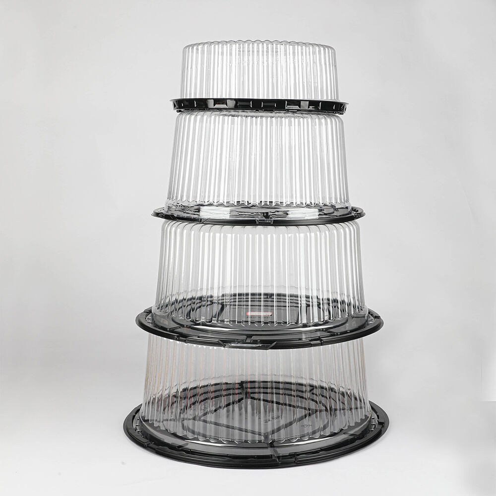 Zavod tomonidan sozlanadigan xalqaro savdo uchun shaffof PET aylana tort qutisi boshqaruv konteyneri