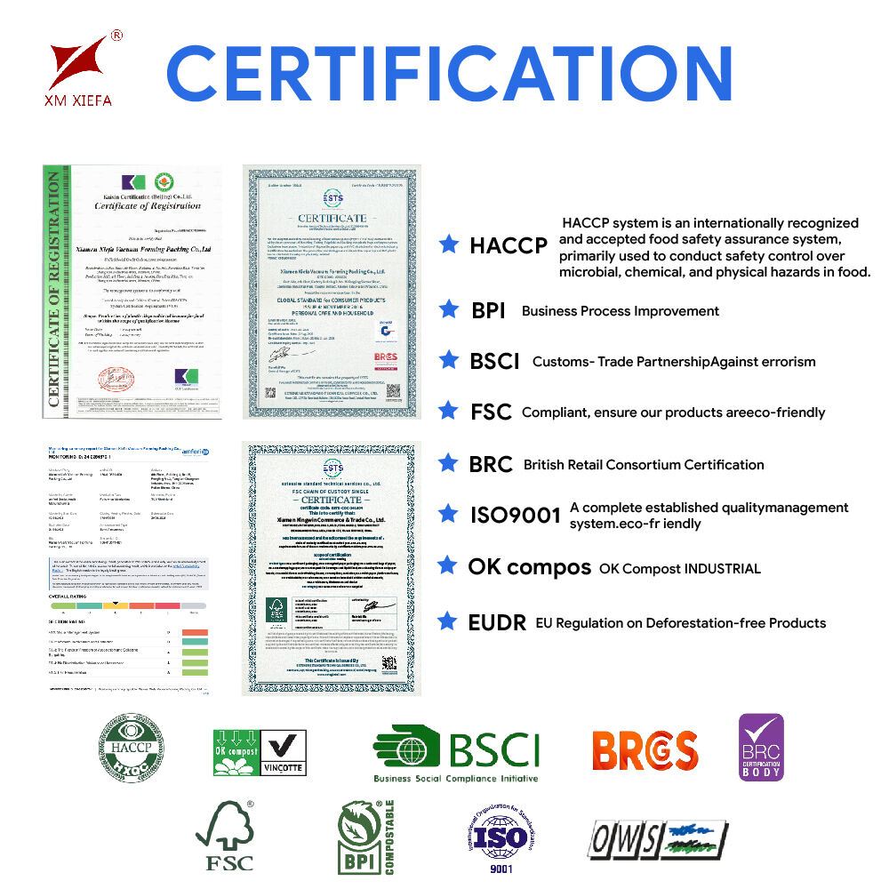 SERTIFIKATLAR : Oziq-ovqat bilan aloqa uchun xavfsiz, RPET qayta ishlanadigan, ISO 9001